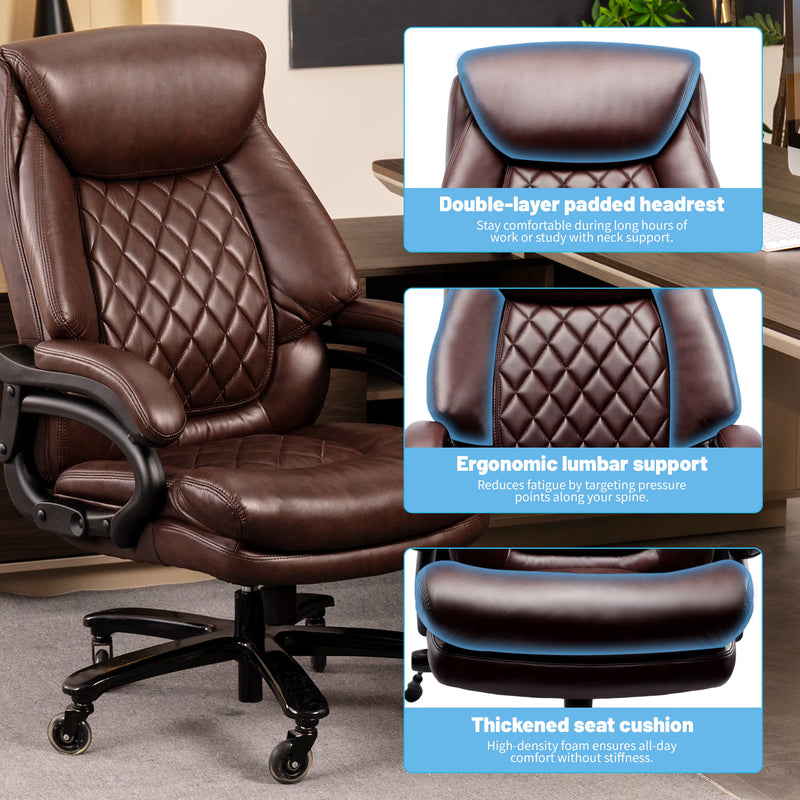Ergonomic Full-Body Support:High backrest, lumbar cushion, and padded headrest deliver full-body comfort and posture support for long work hours.