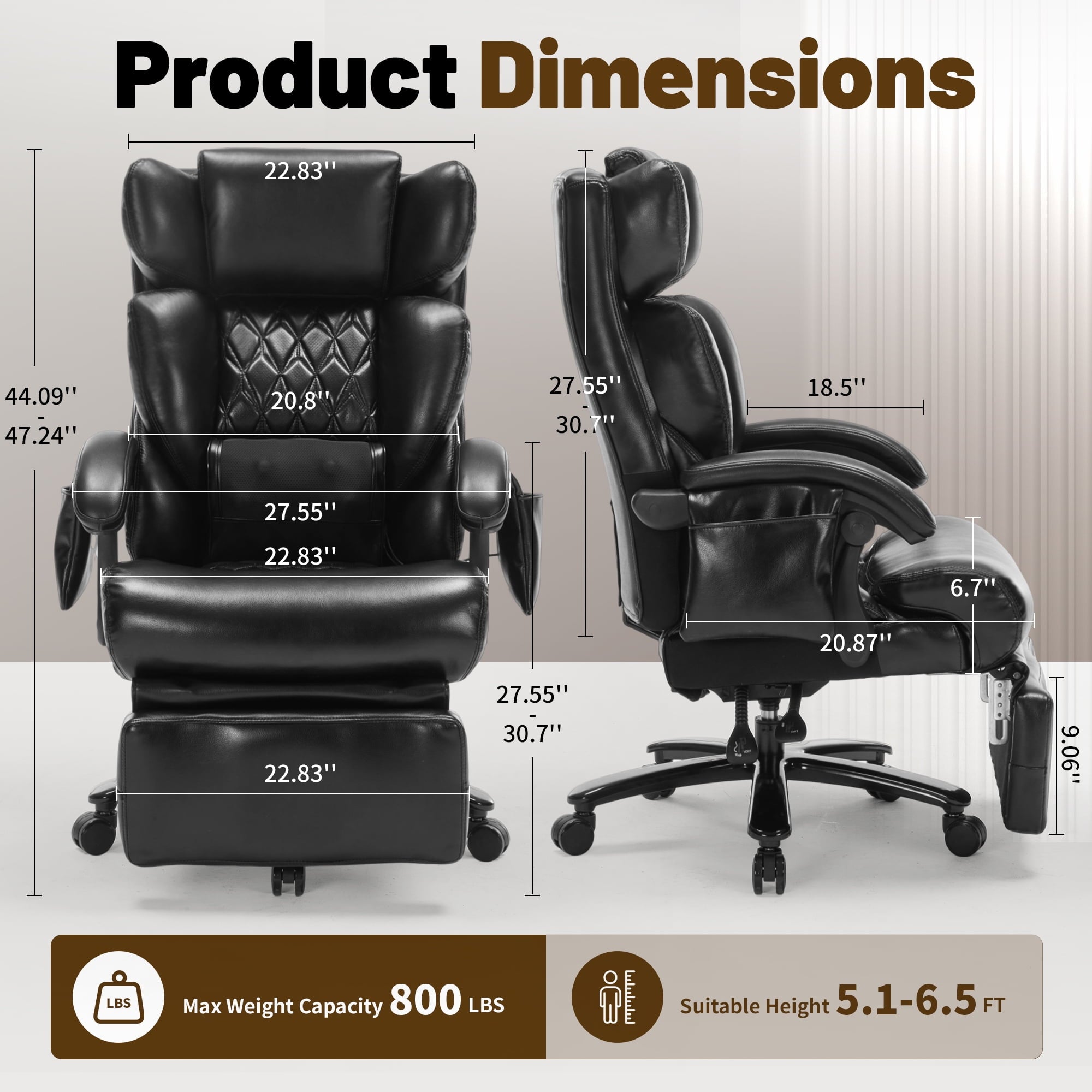 800 LBS Heavy-Duty Support: Designed for big and tall users, this executive chair features an ultra-wide seat with plush memory foam and a spring-cushion system that evenly distributes pressure for cloud-like comfort and lasting durability without sagging.